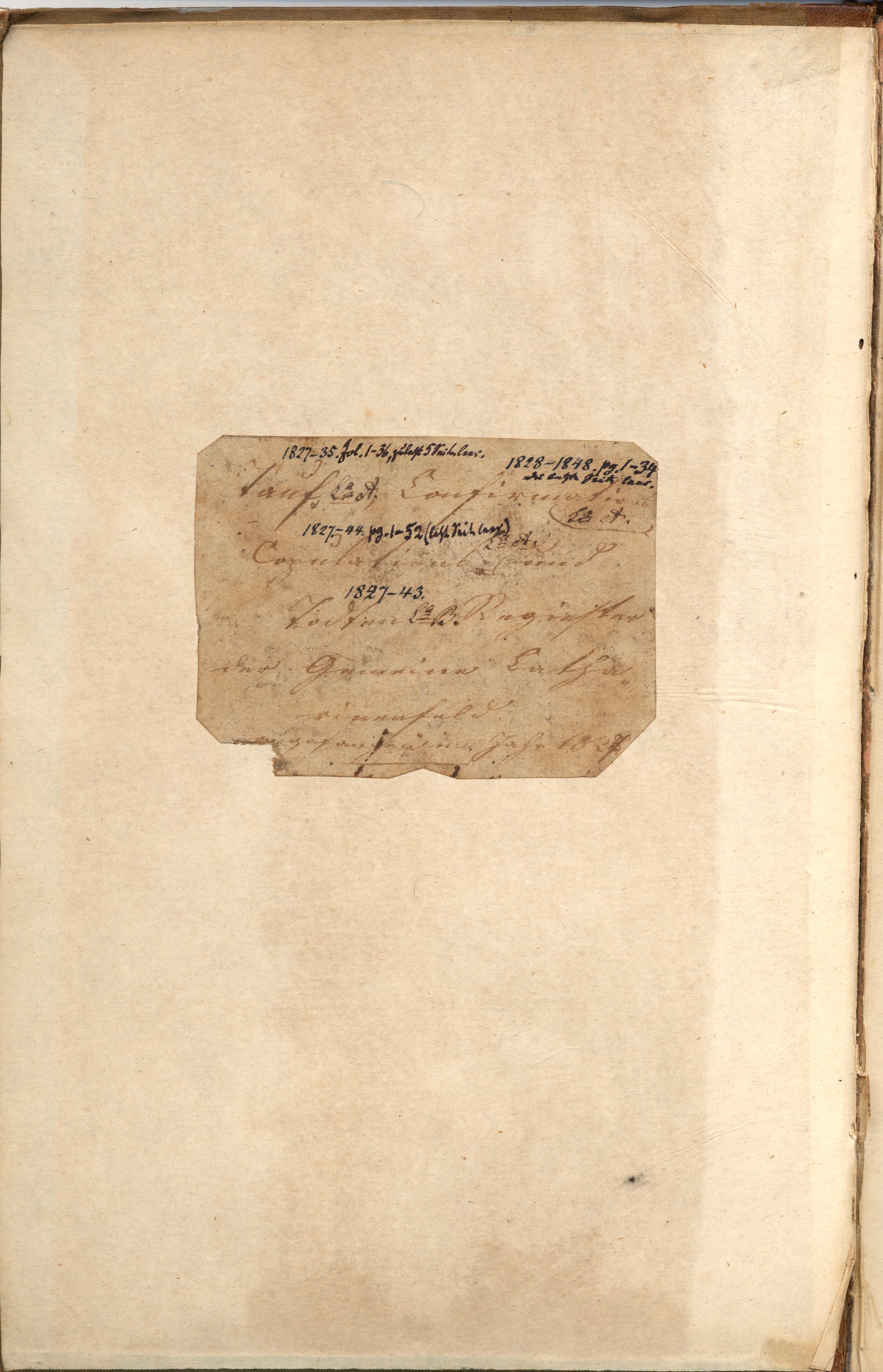 1) Taufregister 1827-1843 2) Konfirmandenregister 1828-1848 3) Eheregister 1827-1843 4) Totenregister 1827-1843